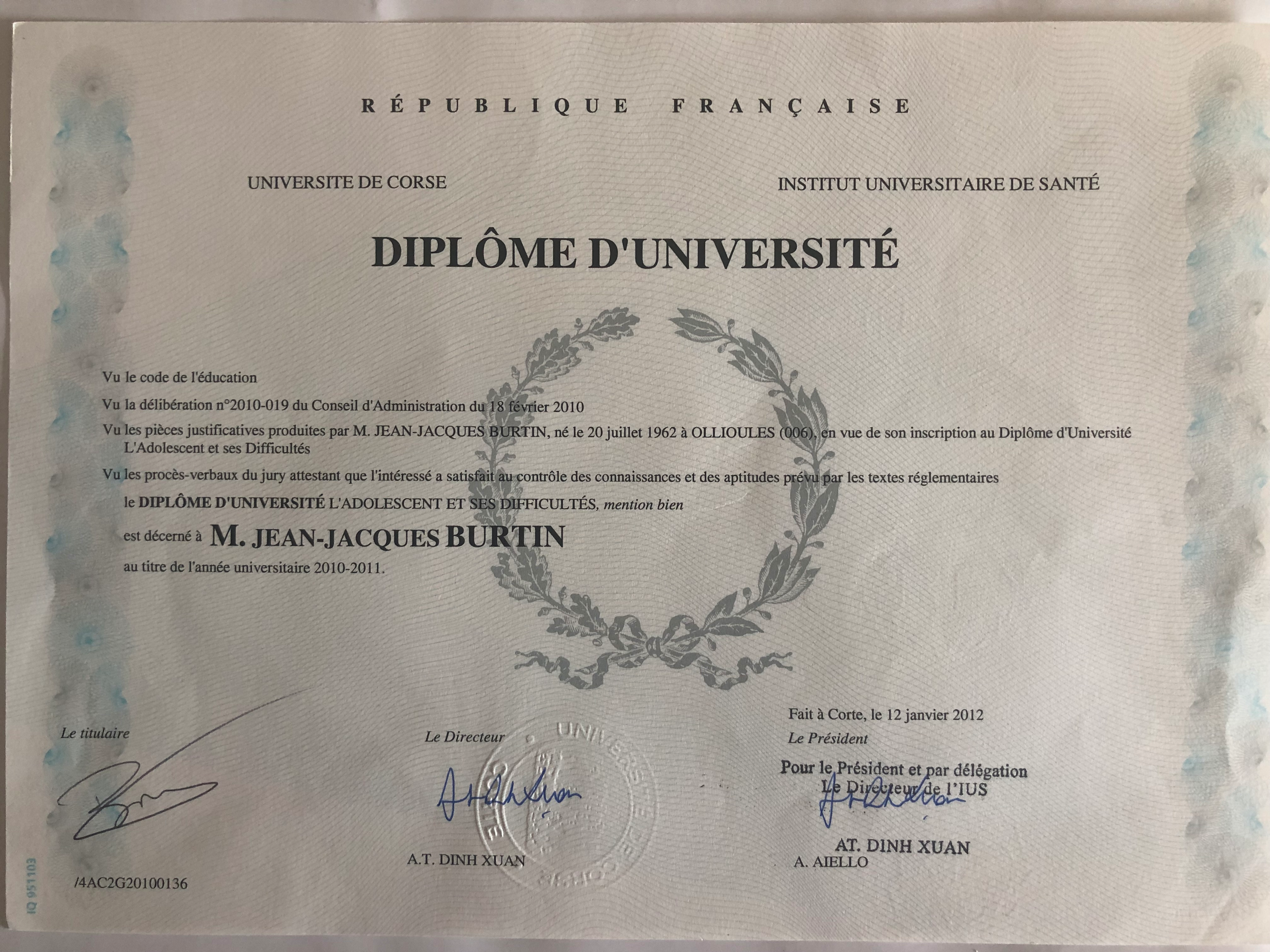 2011 - Diplôme Universitaire (CORTE) de l'enfant et adolescent et ses difficultés.