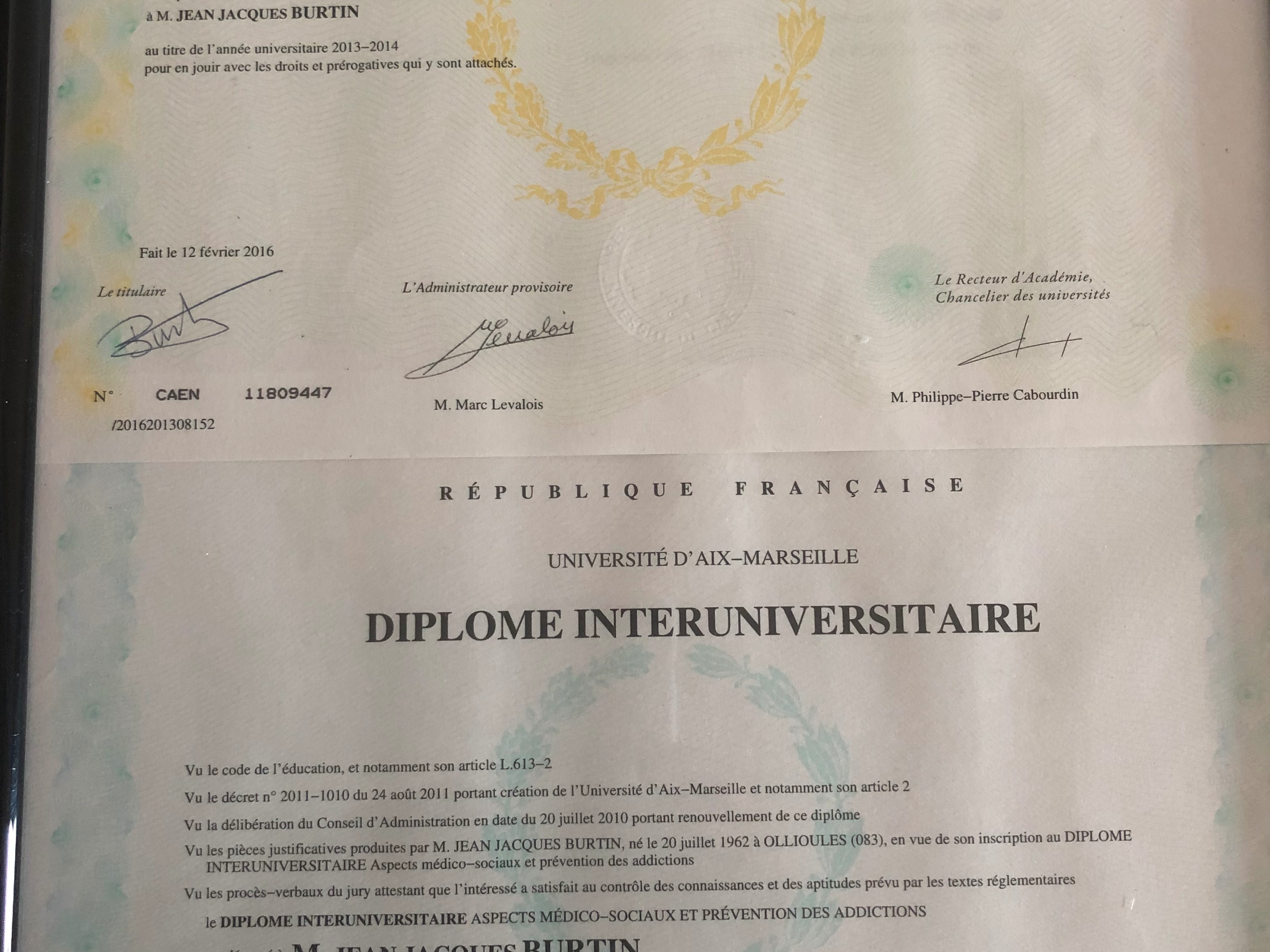 2012 - Diplôme Inter Universitaire (Aix- Marseille, Nice) en Addictologie. PRS LANCON ET TRAN.