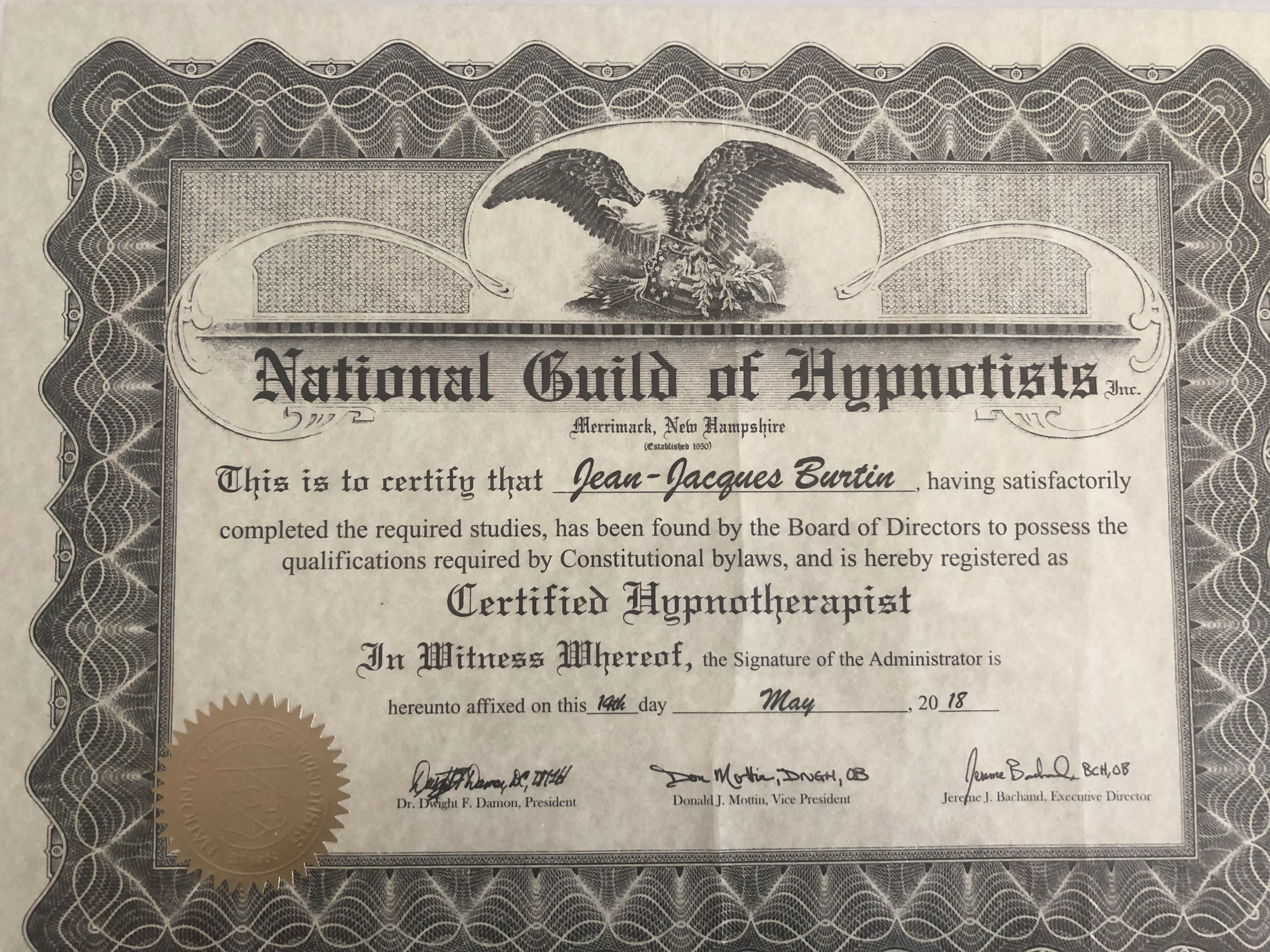 2020 - Diplôme universitaire d'hypnose médicale (Aix-Marseille). DR F. DERYNCK - PR LANCON.